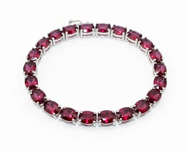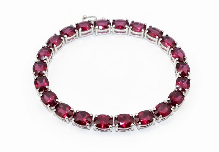 numerous oval-cut deep red garnet gemstones, jewelry and fashion.