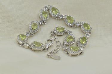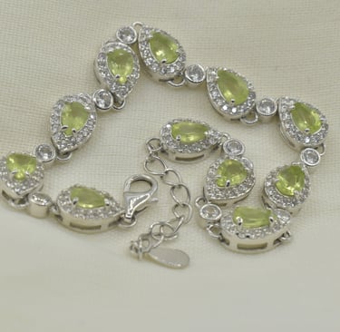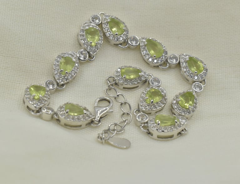 teardrop-shaped green peridot gemstones and sparkling cz accents.